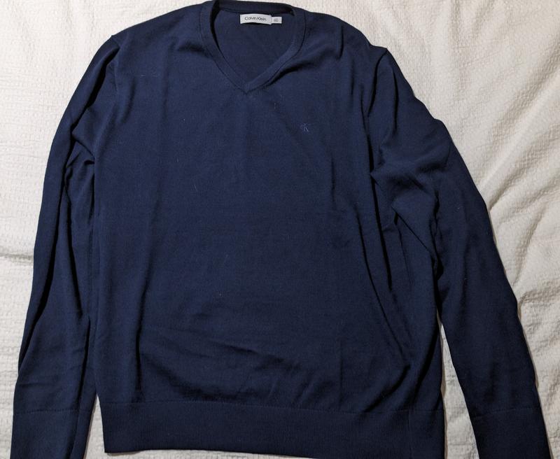 This Calvin Klein sweater is very comfortable to be worn on its own or as a layer. It is a great color and goes well with most things. It fits well without being too tight.