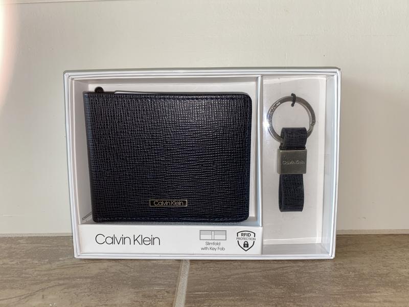 I got the Calvin Klein Men's RFID Leather Slimfold Wallet with Metal Key Fob for myself. It is a great looking wallet! The leather has a textured look to it that adds to its look. I like that it has the RFID security for my cards. There are enough slots for all my cards and money. The key fob was an extra bonus that is nice too! I would recommend this product to my family and friends.