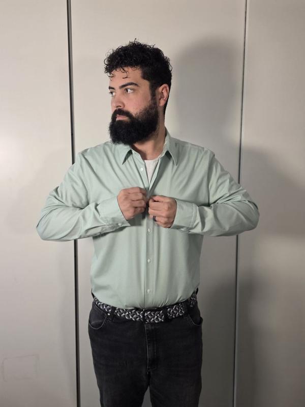 I wear a lot of suits for business meetings and gatherings, so this Calvin Klein button shirt fit right in! Its a great fit and a comfortable material, I also enjoy that it's very breathable as I run hot. It looks great unbuttoned, buttoned and even better with a tie!