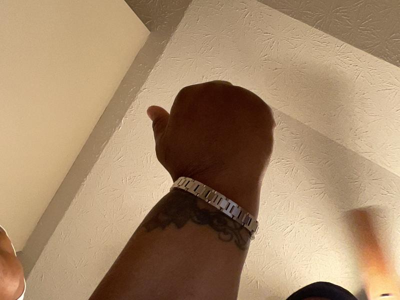 I am absolutely loving my Calvin Klein bracelet. The quality is top notch and it looks super sleek. It is really durable and feels great on my wrist. The stainless steel gives it a modern and edgy vibe that I adore. Highly recommend.