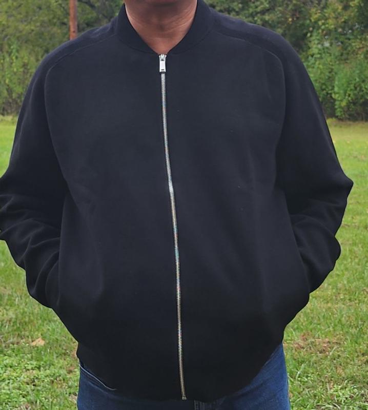 Calvin Klein Tech Knit Bomber is very good quality. I love the fact that it is light weight and warm. It looks elegant for an outing. The sizing is perfect true to size. And the full zip is another big plus for me.