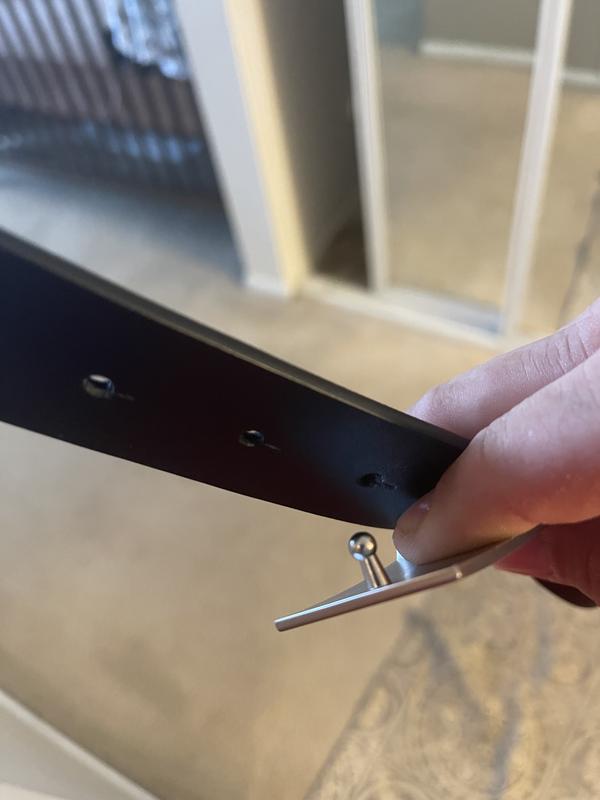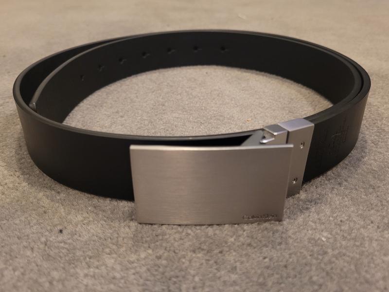 This just misses. It's difficult to find a plain plaque/plate belt these days. The reversible feature is its downfall. Because of the size of the reversing mechanism, the belt never sits flat on your waste relative to the plate. It's always sticking out, an I just cannot get past that. Possibly a longer frame would make it work. The strap itself is fine. Whoever decided reversible belts were a good idea should be banished. Now more than half all belts are are cheesy gimmick that are better suited for teenagers. Just stop with the reversible belts.