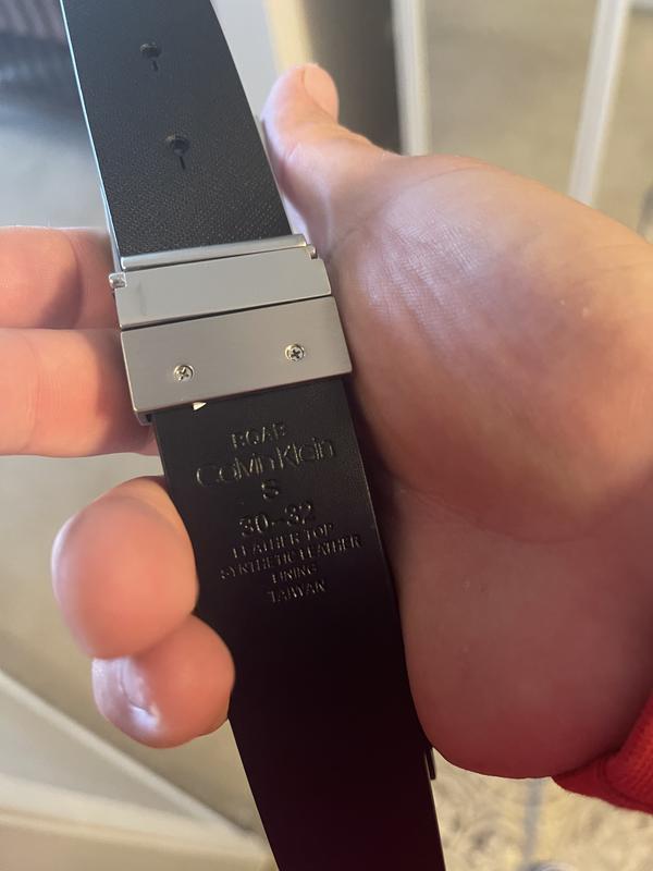 Add the perfect complement to your sophisticated look with this reversible belt from Calvin Klein, made from leather and featuring an engraved logo in the buckle.