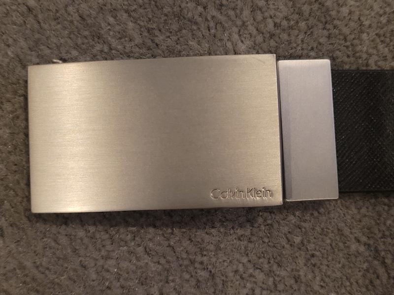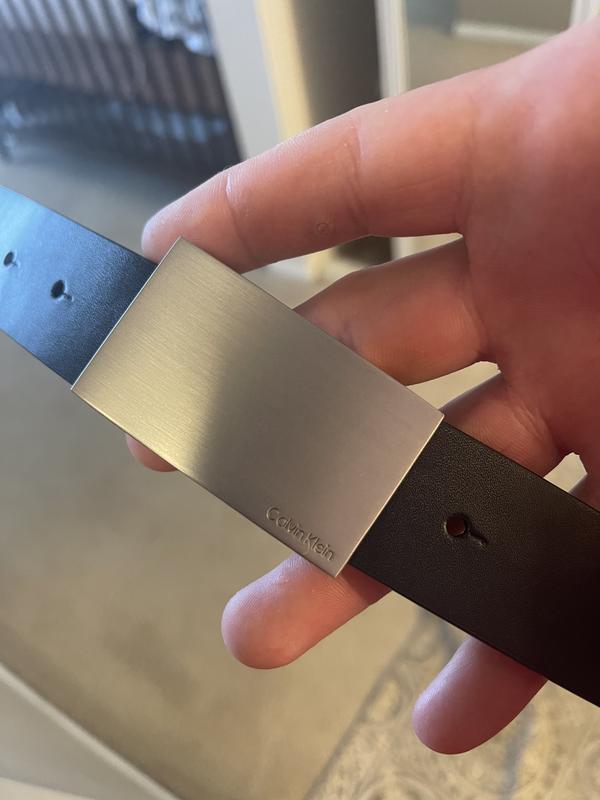• Minimal Calvin Klein logo engraved in silver plaque buckle