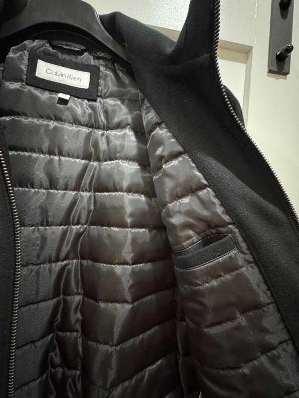 Great coat. Has a good wieght to it. Ive noticed calvin klien run a bit large. So for me i always size down.
