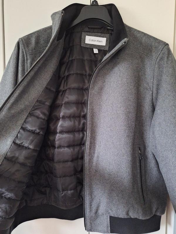 This Calvin Klein wool bomber jacket has a classy look and feel, it'll look good with a pair of jeans, chino's, or Dockers.
