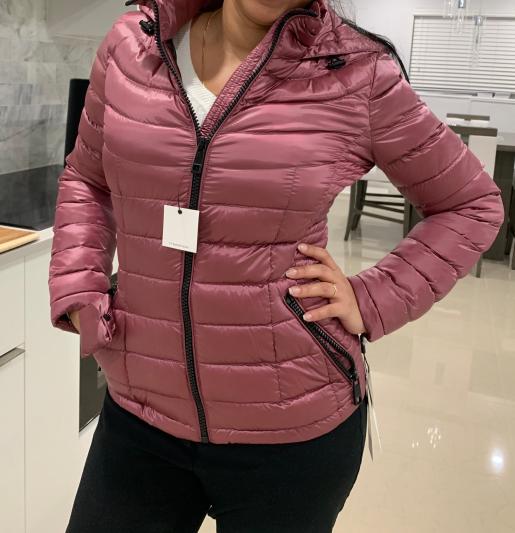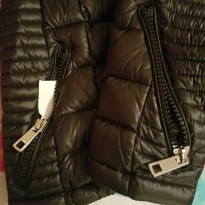 It's lightweight and warm. I like all the pockets. The jacket looks nice overall. However, it has one major flaw - tiny feathers come out through its material, on the inside and outside. If you're wearing a dark top under the jacket, you'll see some tiny white feathers. And if you're wearing a light-colored top ...it'll still be covered with feathers. They just won't be so obvious.