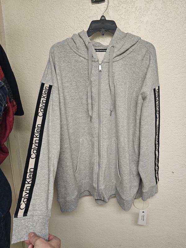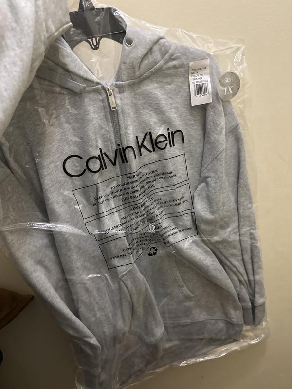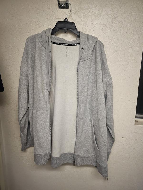 ordered this in black, nice and soft material. not to crazy about the logo on the sleeve now that I see it in person. I will wear it as I was looking for a sweatshirt jacket. to me it does not run true to size it runs small. I knew this because I have a Calvin winter coat which I had to buy 2 sizes bigger to wear sweaters or sweatshirts underneath. I usually buy large or xlarge in other brands. this sweatshirt I bought a 1x and it's just right to wear a turtleneck and sweater underneath.