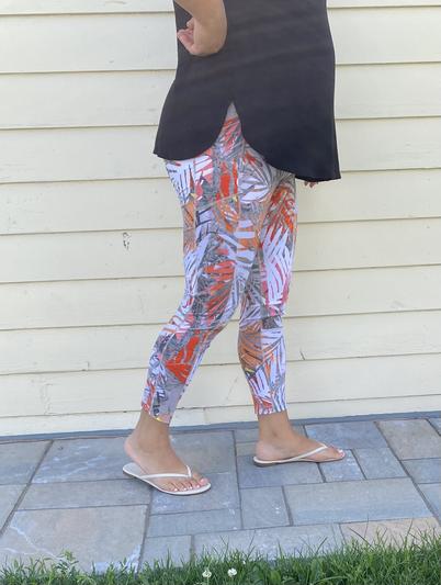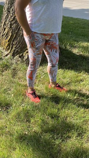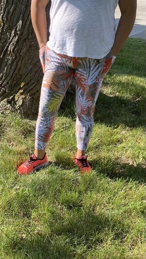 Purchased teal color print. Beautiful and vibrant colors. Very soft fabric with good/tight hold. I'm 5'9, 165 lbs. Size L perfect fit. Pants length slightly above ankle.