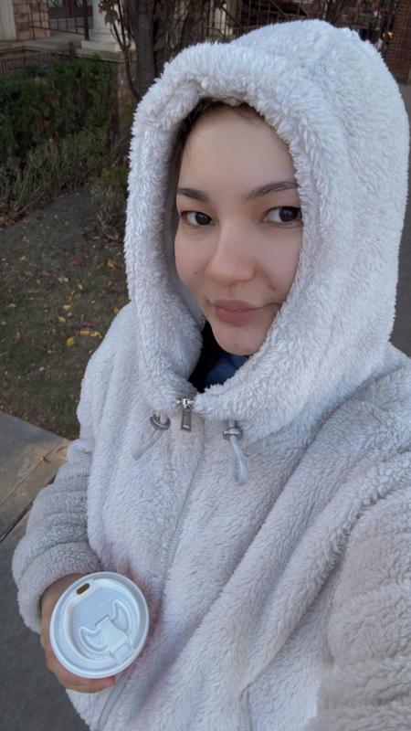 The material is so soft and fluffy. The jacket fits well - loving it so far.