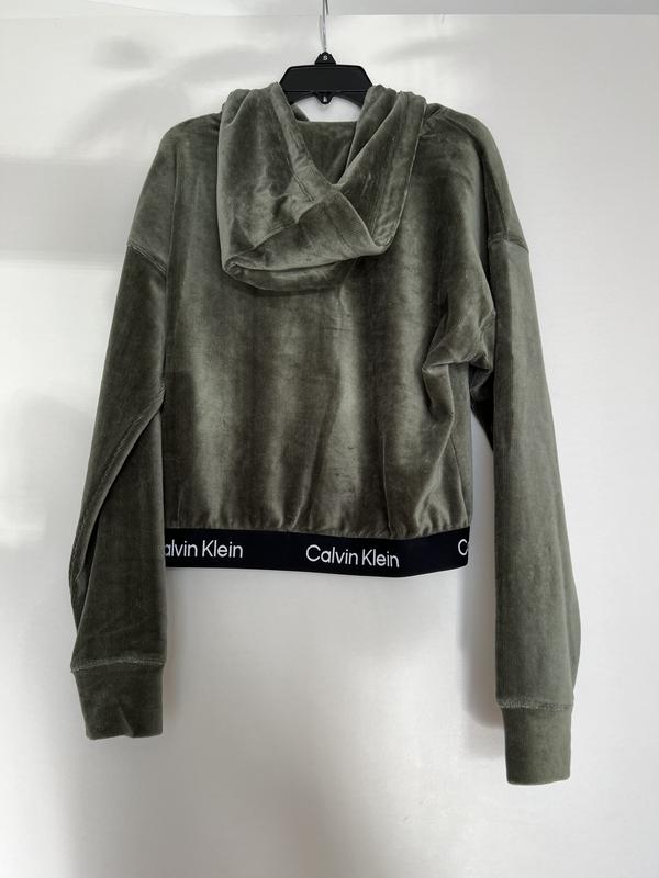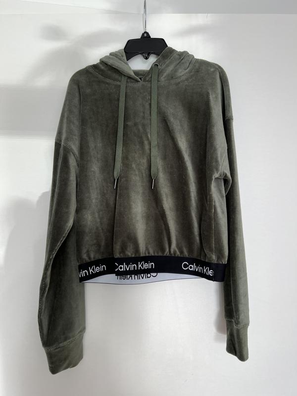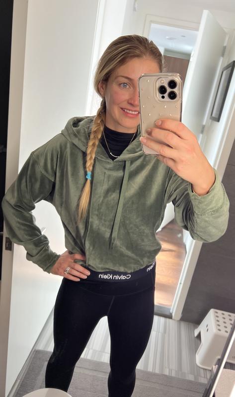 Women's Logo Elastic Long-Sleeve Pullover Velour Hoodie