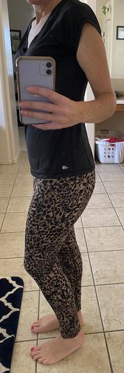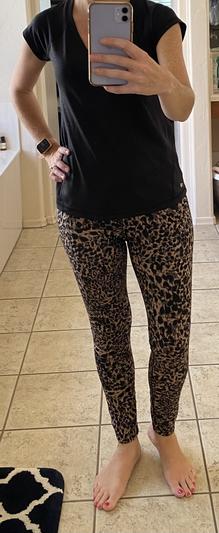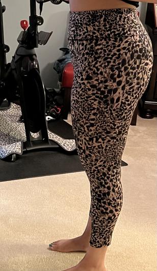 These leggings are a fun Leopard print! I love them because they are so comfortable. My boyfriend says they're sexy. True to size, high waisted with an inside pocket in the front for my phone, and a perfect 3/4 length. Calvin Klein did it again!