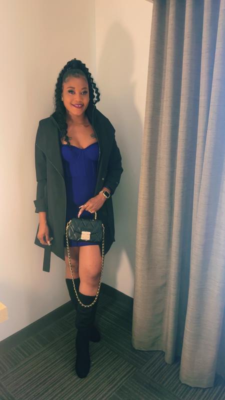 I love this trench coat! It is lightweight but also keeps the chill out. Fits very well and looks chic.