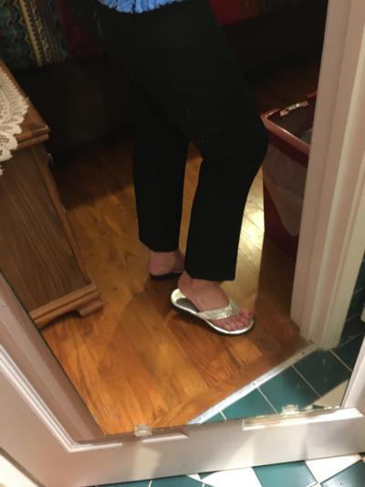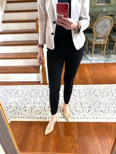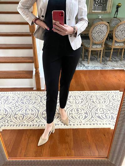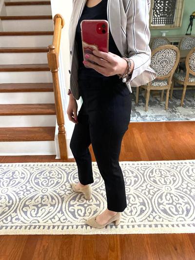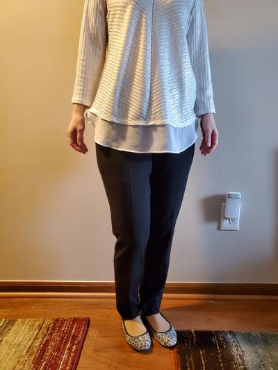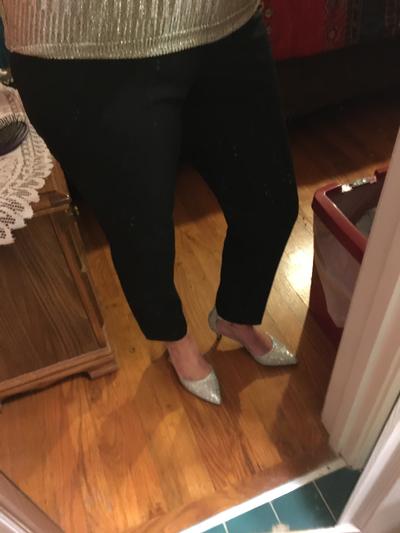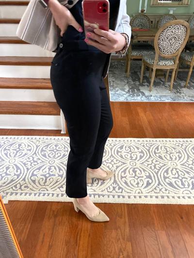 Love these pants. Looks dressy with heels and also great with a pair of flip flops. Hem hits right a my ankle. Staple for any closet!