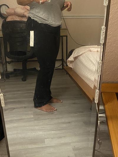 I ordered these in 12 and their a little tight. I will add a picture once I drop a few pounds. They do have a very nice shape and cute details. Nice material that's not itchy and a straight leg that's not too tight. Perfect for comfy office wear.