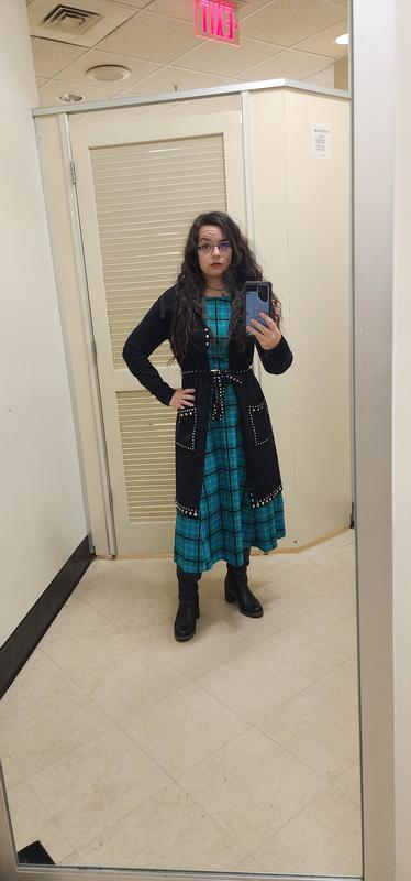 such a beautiful dress especially if you have a small waist. looks very elegant and is office appropriate.