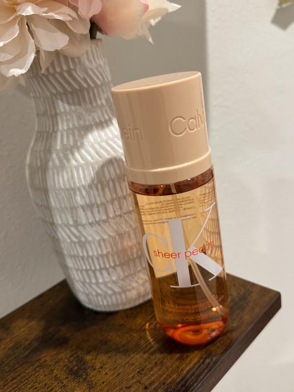 This Calvin Klein Sheer Peach Hair & Body Perfume Mist smells so good! The peach scent is perfectly balanced without being overly sweet. It smells really clean first with the ending note being peachy. Even though the bottle may appear like any body spray, thereās absolutely a difference in longevity. I was able to use two sprays on my body and one spray over my hair in the morning and it lingered on even into the evening. The bottle reads āThe first layer you put on. A scent for hair and body that wraps you like a second skinā. I love the play on words instead of just listing typical boring directions. The bottle is durable and fairly large with a quality spray nozzle. I definitely recommend trying this. Gifted in exchange for my honest review.