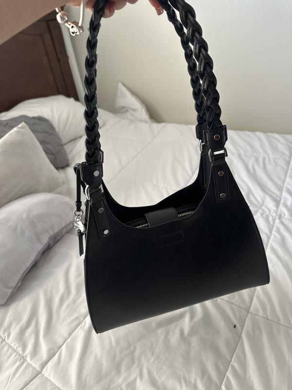 This is a very pretty purse. The cabernet color is rich and beautiful and the braided handles are unique and pretty. The leather seems of good quality for the price. However, the way the internior of the bag is designed makes it much smaller capacity than it looks from the outside. There's a small zippered interior compartment that is much smaller than the actual dimensions of the bag. I had purchsed this because I needed a bag with a bit more room than my current one, and based on the dimensions it seemed like it was just the right size. But the interior design means it holds no more than my current smaller purse! And the design of the zippered compartment makes it very awkward to get things in and out of it. There's enough room for a smartphone, very small wallet, very small makeup pouch, eyeglass case and bandana scarf. If that's all you need to carry then this is a very lovely bag. But if you're hoping for something that can fit a bit more this might not be the one for you.