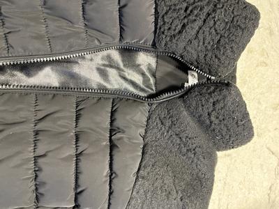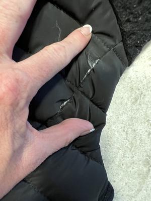 One side of the collar flattened and isn’t fluffed up like the other side. Also after 3 months of having this jacket went to wash on gentle cycle ( per the instructions) and the seam is coming out on several areas. I’m disappointed because CK makes good quality clothing. Sad that I can’t exchange because it’s pass the deadline of return. Only had it for a little over 3 months.
