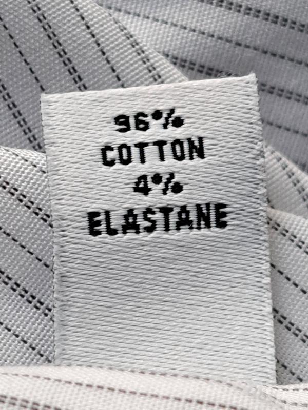 This review is for the white fabric version. SEE-THRU fabric! You can see tattoos, areolas, moles, hair pigmentation, etc. White undershirt is required if you want to wear it to the office/work or a formal event. Otherwise a nice shirt. 96% cotton 4% elastane. Removable collar stays. Feels good. But I returned it immediately.