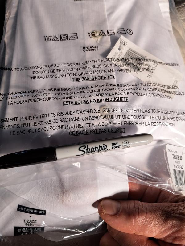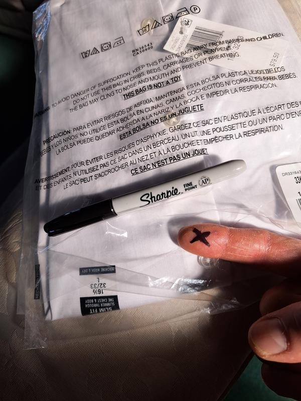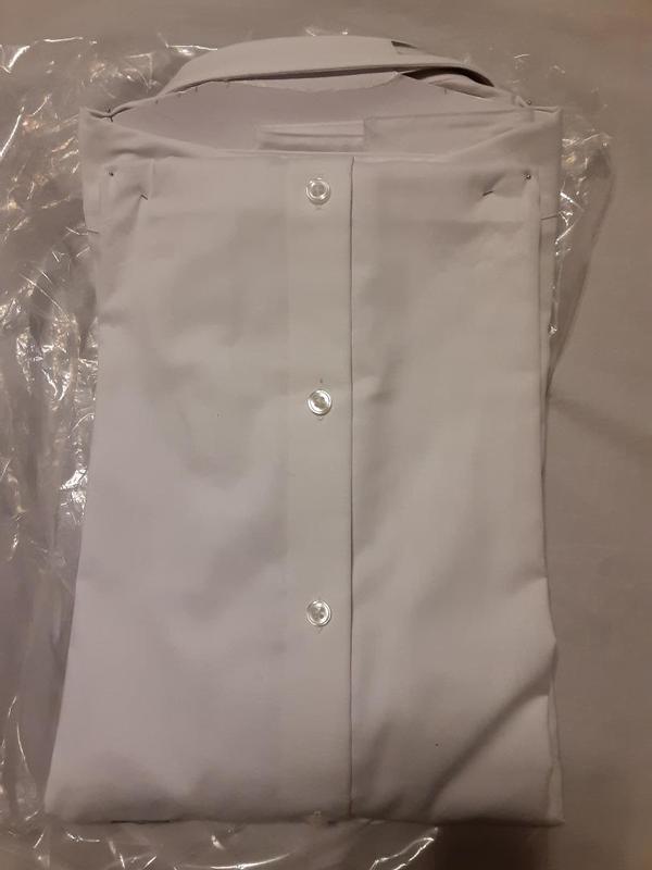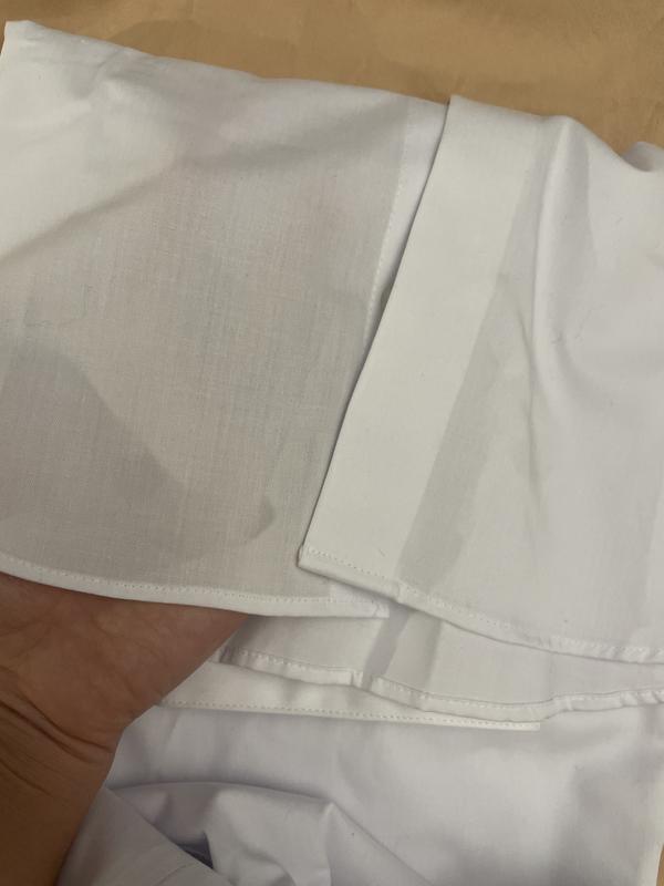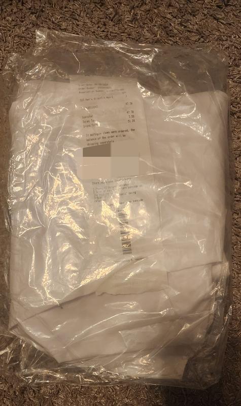 Shirt arrived packaging was perfect but upon opening and unfolding the shirt the cuff had a rip and missing buttons