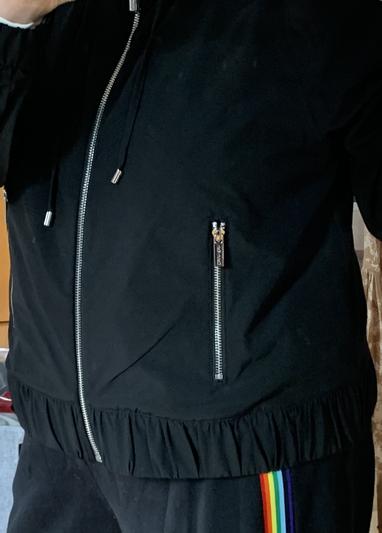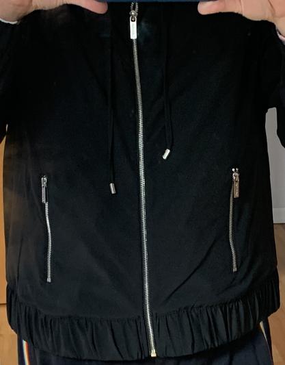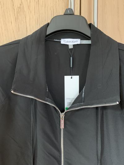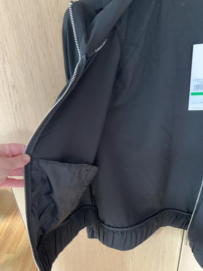 I have several CK athletic jackets in the same size as this but this one just fits odd. The sleeves hit above my wrist and it sits well above my waist, however the large elastic band at the bottom is so wide that it almost feels as if it is stretched out. If it weren’t for the weird fit it would be nice. The fabric and the metal accents dress it up a bit, but the fit just ruins this for me..