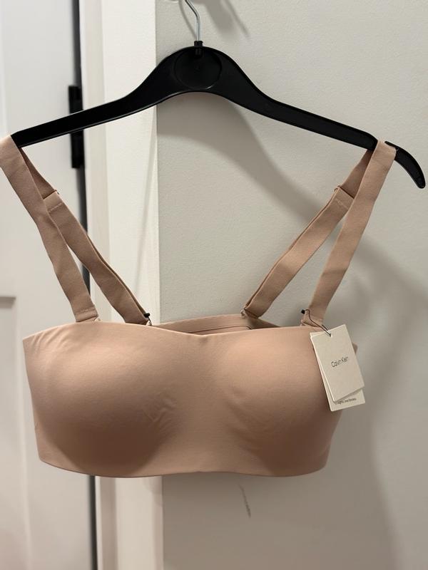 I love how extremely light the Calvin Klein Bandeau bra feels. It molds to my body as if I am not wearing anything at all. Absolutely love that it can be worn strapless as well as that offers such versatility. Beautifully made and highly recommend!