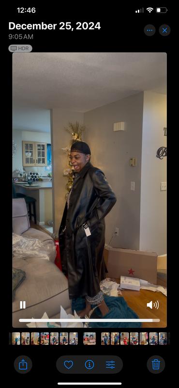 If you don’t already own a faux leather trench, this is your sign. Fits true to size and quality is amazing.