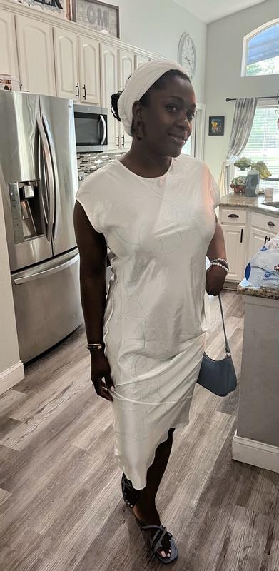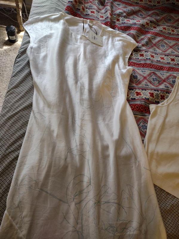 I loved this dress, its fabric is very high and leaves a very beautiful body figure despite being achieved. I love the small color details it brings and it is of very good quality. It's white but you can't see what underwear is and its fabric is very fresh