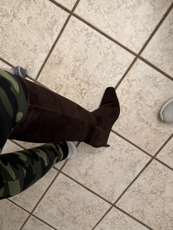 These are great boots. Beautiful color and they fit true to size. Love that the heel is about 2 inches and that these are real suede. Great buy for the price.
