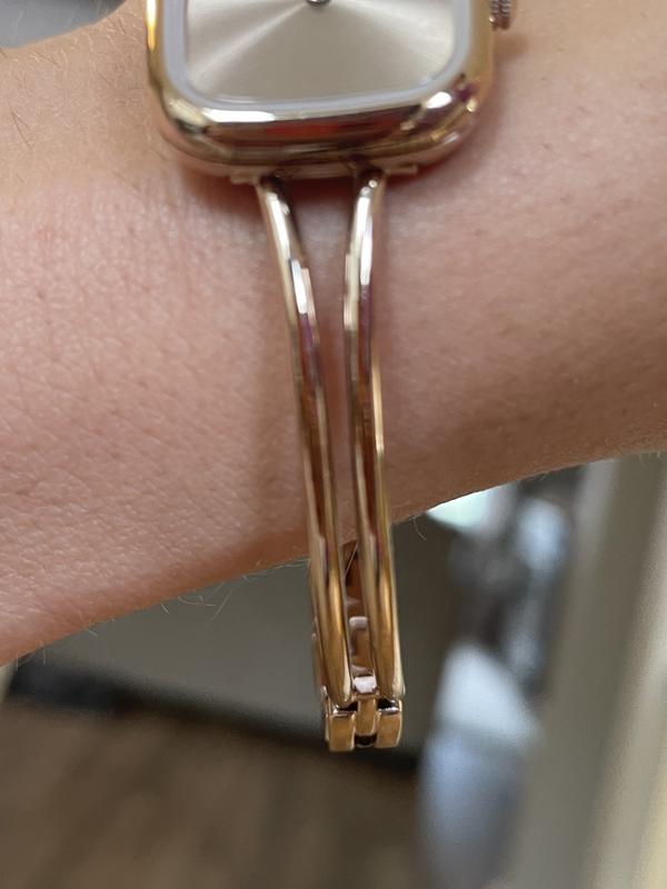 I surprised my wife with this watch and she absolutely loves it! She’s not a fan of smart watches, so to receive a “real” watch was the best gift. The watch looks spectacular in rose gold! It is classic and elegant. She loves the style of the face. And even though she has a small wrist, because the watch band is designed with chain links, all we had to do was remove some links and it fits perfectly. She can’t wait to wear it at our next gala!