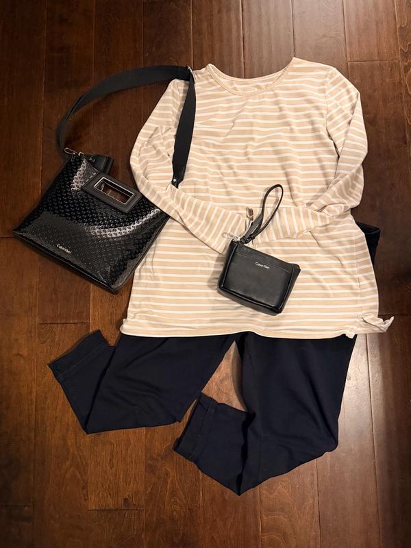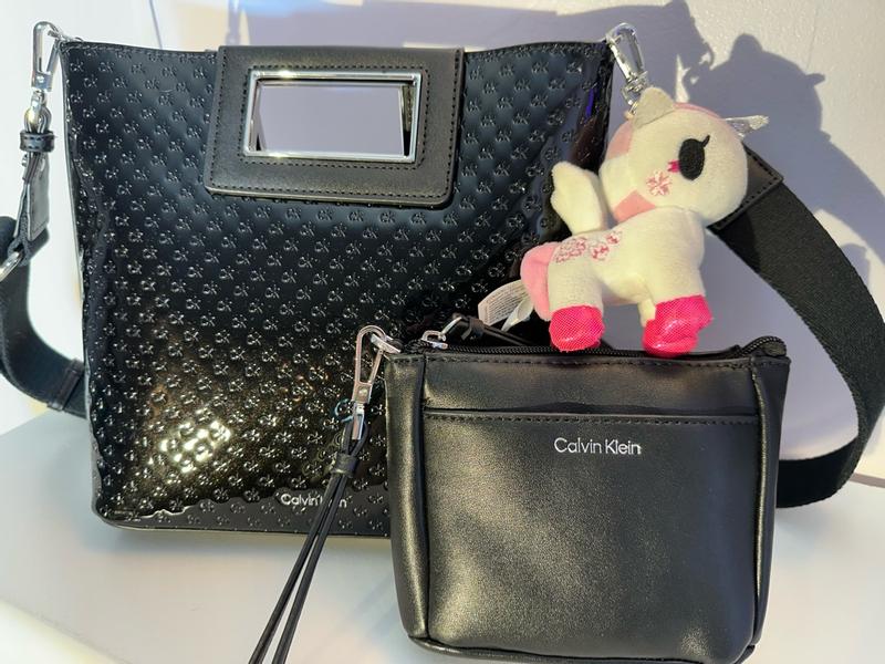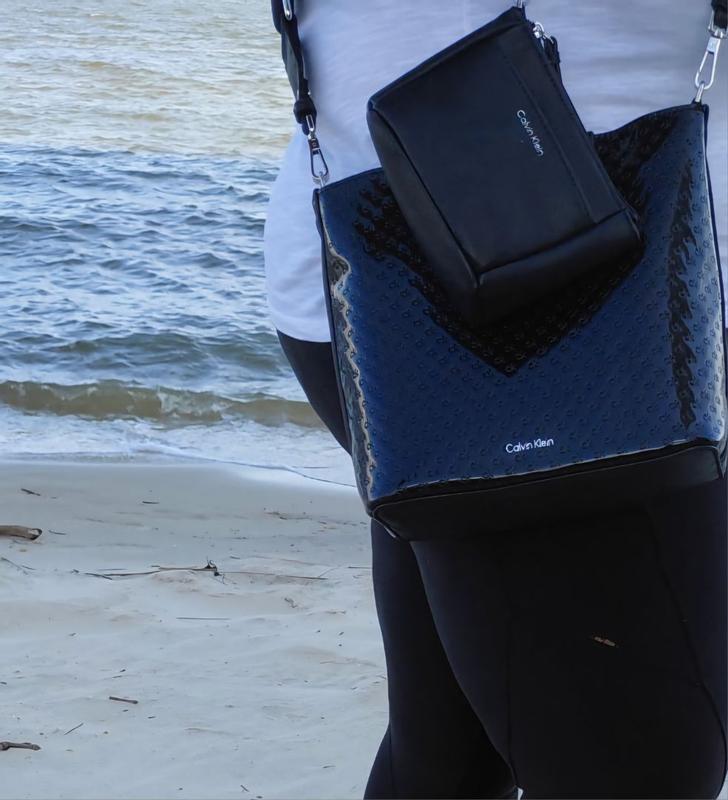 I am beyond thrilled with my calvin klein purse. The quality and materials used on this bag are top notch. The sturdy canvas strap that can be changed out to fit your style or holiday. The easy wipe outer shell. The leather like makeup bag insert with a nice zipper. The magnetic closure on the leather like handles. The beautifully embossed CK throughout the bag makes this an upgraded cross body. This bag can easily be used on dressy days or cool enough for casual style. Its everything I can ask for in a crossbody.