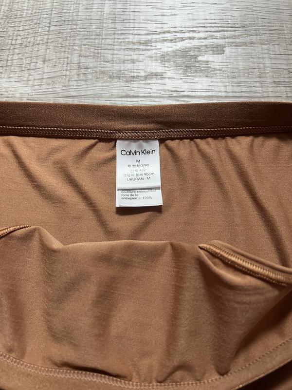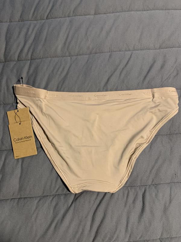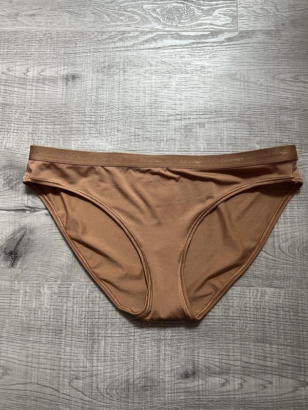 The Calvin Klein form to body bikini has an amazing fit. It fits very well and has a good stretch. The color is a copper color. I would recommend this to anyone who is looking for a bikini cut underwear.