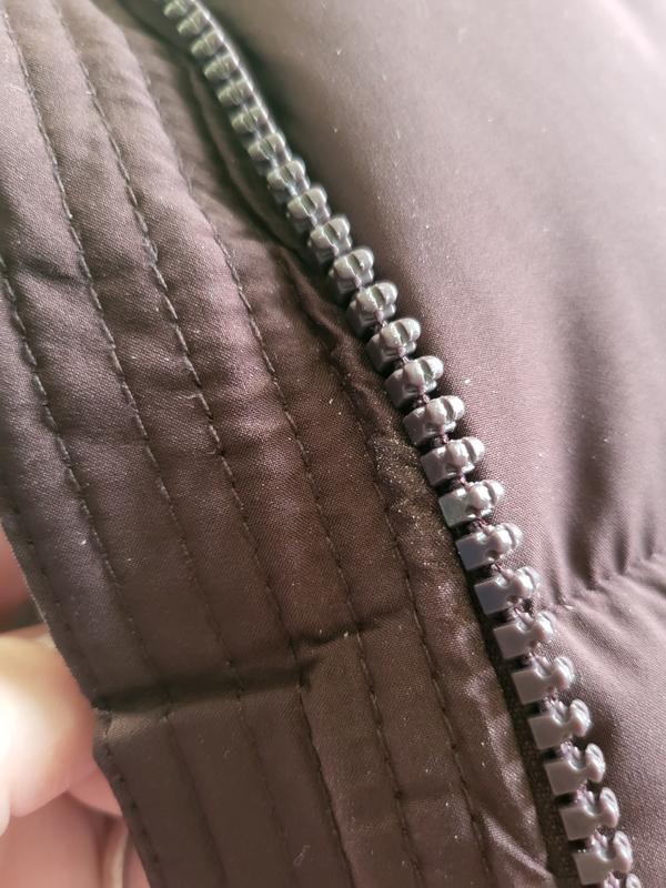 The coat is warm and good quality, sturdy zipper. The only thing I don’t care for is the “crinkly” sound when handling the coat, sounds sort of plastic like. Otherwise I do like the warmth it provides