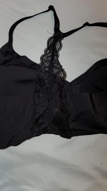 - Special Features: V-neck; lace racerback; seamless elastic band; bonded panels for support