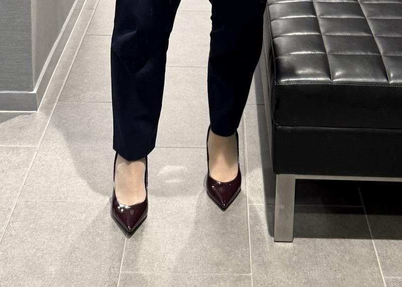 Great color and the heel is the perfect height! Since the shoes are synthetic, buy one half size larger.