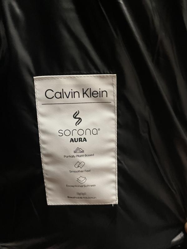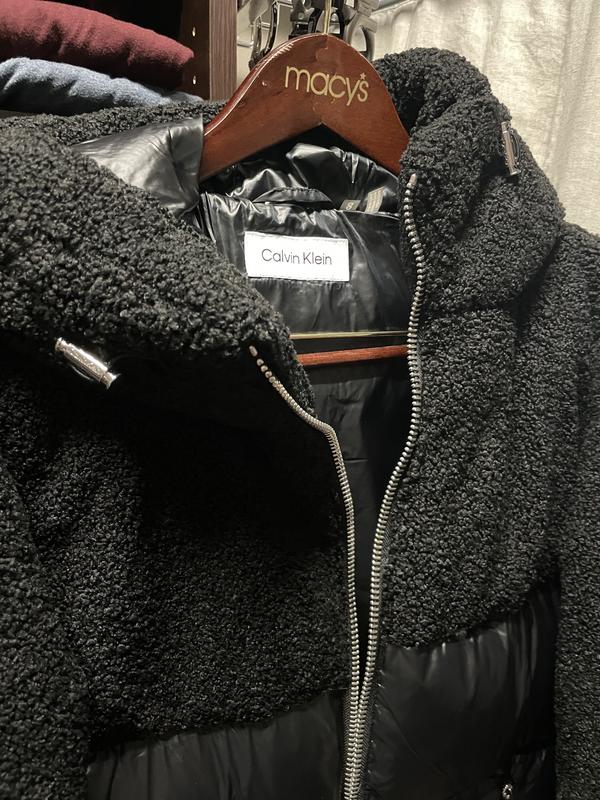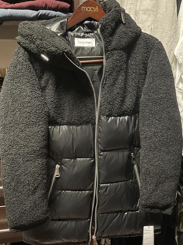 Web ID: 14143611Women’s mixed media puffer hooded coat.Calvin