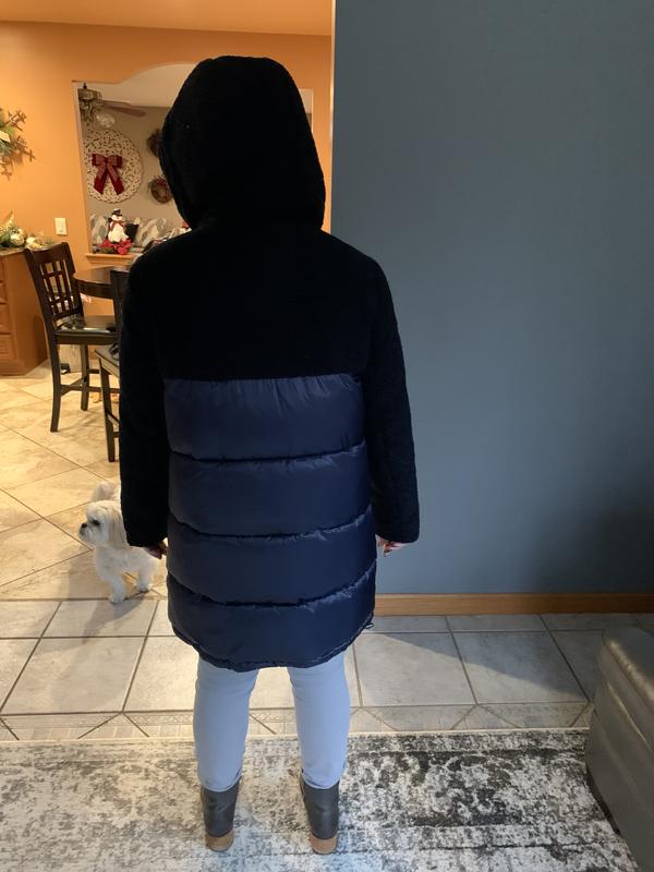 First thing that came to my mind when looking at this jacket is teddy bear !! I love the Sherpa feel, super warm and cozy. Calvin Klein did it again. This jacket is roomy, yet not boxy. The zippers on the sides are perfect for gloves and small things, especially my phone. That’s a big plus. I love the adjustable string for the hoody. And last but not least, the zippers is very sturdy. I know I can layer at ease and not worry about zipping up. This coat is perfect for snowy days.