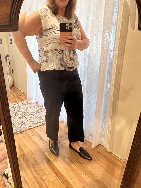 This is a cute top that can be worn casually with jeans or leggings or more business casual with slacks. I like that the front has a little twist at the bottom that keeps it from hanging loosely. The fabric is light and there is a liner to keep it from being see through with the white option. This will be a definite summer option for me because of how light the material is.