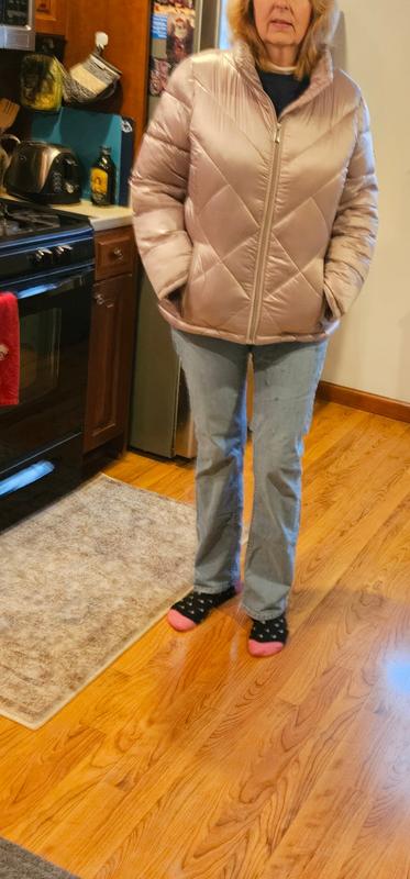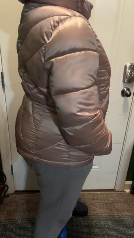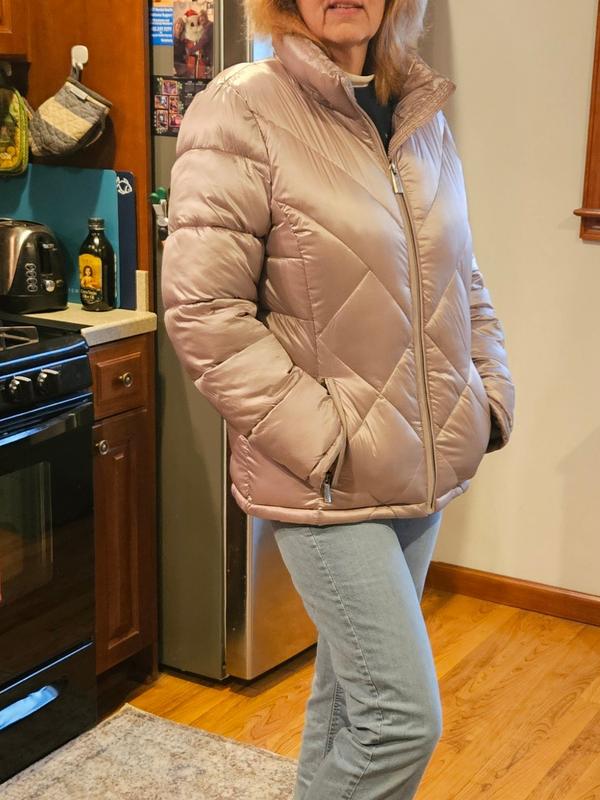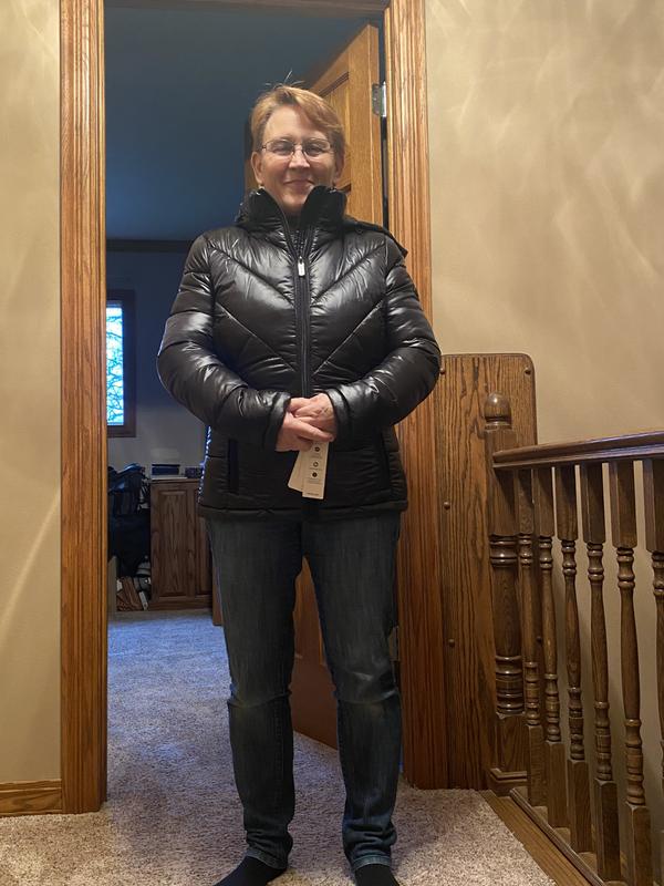 Nice, warm and comfortable jacket, beautiful blue color, very easy to put it on and lightweight, Perfect for me that I am disable and always have problems to get it on heavy jackets. I am 5’6 150 pounds. I am usually Large but I got XL and it was perfect with an extra room for a hoody. Great deal also. Thank you Macys