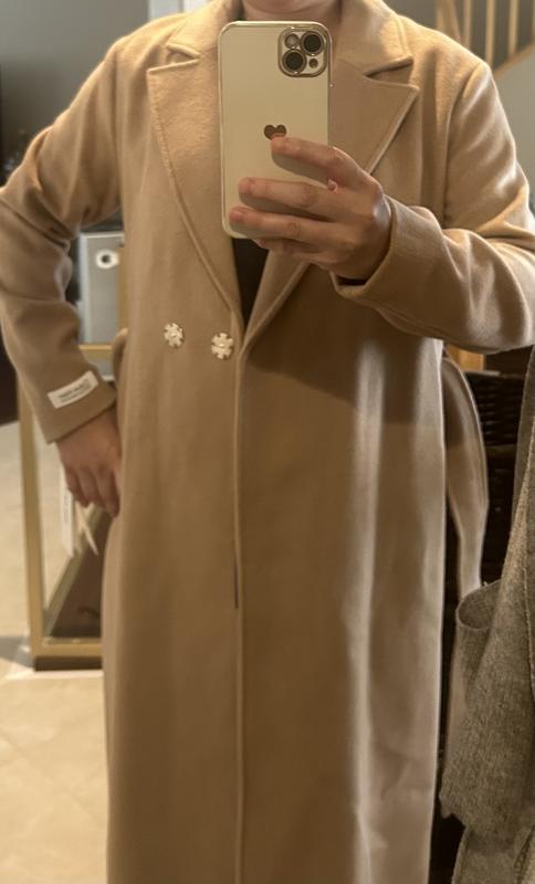 Pure luxury for a nominal price. I caught this coat on sale, which was fantastic! If I had one complaint, it is the belt loops. I do wish there were actual belt loops made with the same material and not just strings. Other than that, it's a nice length and warm too. I purchased a Small. For reference, I'm 5'4.5 and 139lbs, the coat hits me above my ankles.