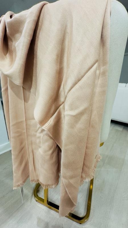 This wrap is the perfect wardrobe staple. It’s neutral gold color has a glimmering effect, and is as soft as cashmere.