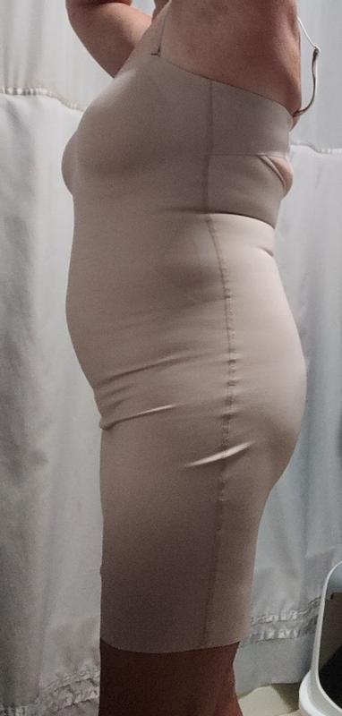 I wore this slip under a maxi dress. I thought it gave adequate compression for my stomach. I would’ve preferred shorts instead since it was hard to walk a lot or dance in this. Also since I have a larger chest the bust area did not suffice for me.