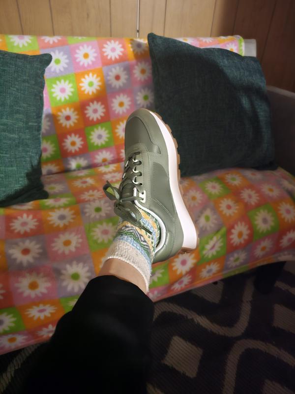Nice shoe however runs a bit wide and looks very large on my foot. I was not crazy about the color contrast either. I will be returning this shoe