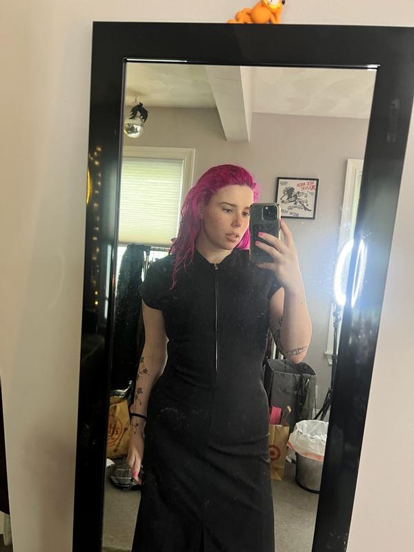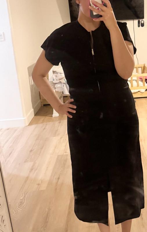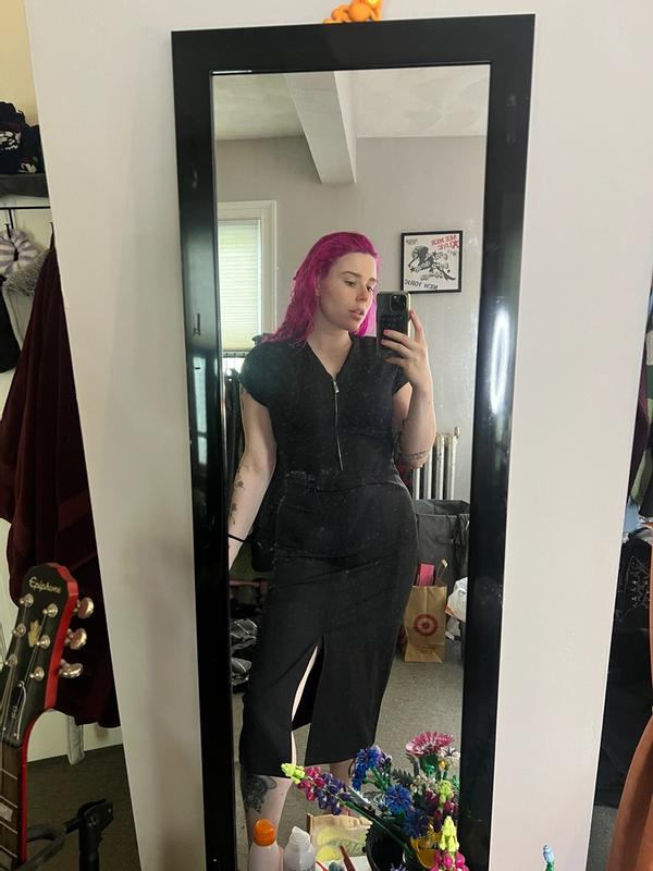 I really loved this !! Everyone needs at least one little black dress !! This is so versatile, you can dress it up or down !! It's very simplistic yet has the perfect amount of details !! It has cute caped sleeves and a slit !? The zipper is the perfect touch and I loved how stretchy the material was and how it felt !! You can tell this is a piece that will last a very long time not just because it's really good quality but because it will never go out of style !! Like I said ,you always need at least one little black dress !! I'm completely so happy that I was able to get this and it definitely did not disappoint !! LOVE IT !!