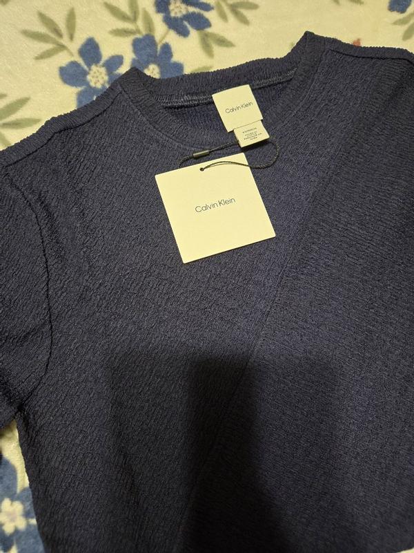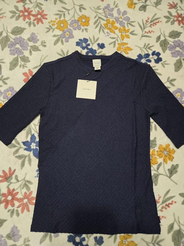 This Calvin Klein lightweight textured knit top is soft, breathable, and perfect for both casual and workwear. The 3/4 sleeves and subtle texture add a polished touch. It fits well, holds up after washing, and is easy to style. Great quality—highly recommend!
