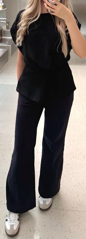 This is a super cute top! It’s great for those times when you need to go straight from work to happy hour - polished and professional but still on trend! Definitely can be dressed up or down. I would say it runs a size big. It has a boxy fit so if you’re taller then maybe size down.