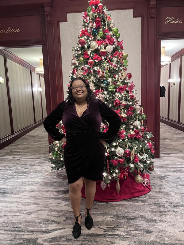 I love the dress. It fits me perfectly and it’s body flattering. It hides my belly, and I look slimmer in it.