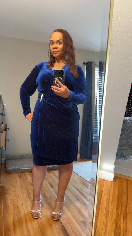 This dress is gorgeous. The blue color is bold and beautiful that you will stand out. The fit was true to size and hugs curves in all the right ways.