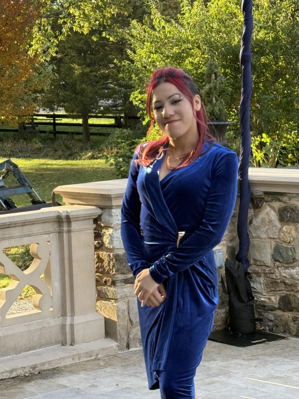 Beautiful velvet dress! I bought the Teal color. Received so many compliments!! Hugs your curves in all the right places!!